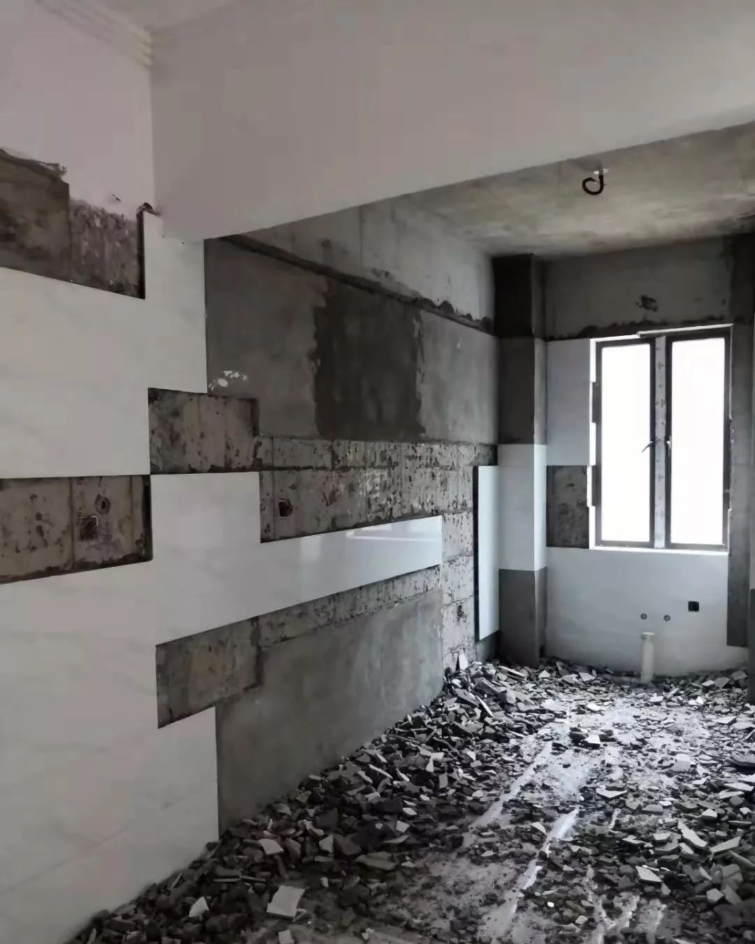 因此,如果采用瓷砖胶铺贴瓷砖发生了整片剥离的问题,很有可能是瓷砖胶粘结层涂刮得太厚造成的。采用瓷砖胶厚贴瓷砖,不仅容易出现掉砖问题,而且浪费材料,浪费金钱,得不偿失。