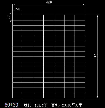 2、下图以600/300,150/150瓷砖为例(单位:厘米、米、平方米)